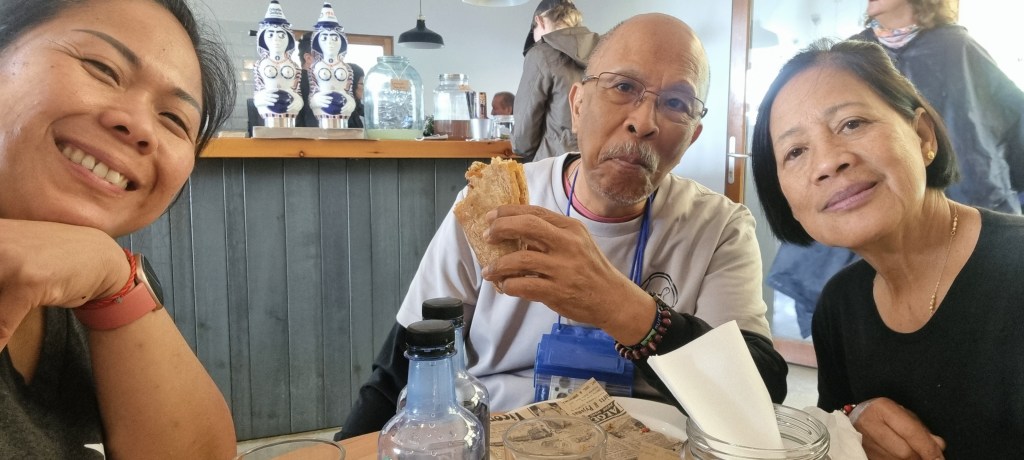 It praying for everyone ‘s safety when unforeseen events pops up . That stormy evening when we were ( Kuya Libs, Ate Beth and myself) the only ones who arrived dry in Palas de Rei and everyone was still out in the rain .. My heart was in panic as I tried to keep my cool , trying to locate ate Luz and Mader , while running out in the rain trying to meet others who were having a hard time finding the hotel. The Camino speaks of being kind and taking care of those who are in need .. this was when Kuya Libs told me to asked everyone who came late to choose the food as we will order them and take them back to the hotel . It was when the hotel receptionist offered to drive us to the resto and take us back to the hotel .